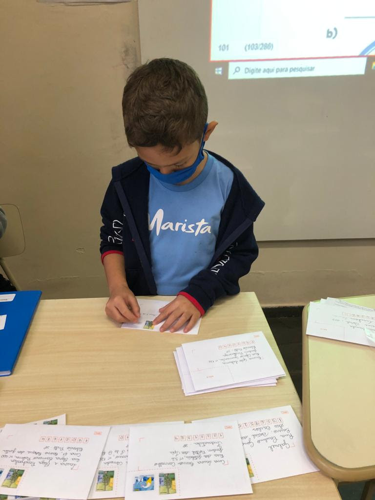 Além de explicar a estrutura do texto, as professoras providenciaram com a escola envelopes, selos e disseram que naquele pedaço de papel os alunos poderiam falar sobre os próprios sentimentos e enviar para os destinatários que desejassem. “Como estamos trabalhando a empatia, o olhar para o outro, vimos ali uma oportunidade das crianças se colocarem no lugar de quem vai receber a carta. O que eles estão sentindo nesse momento”, acrescenta Furtado.