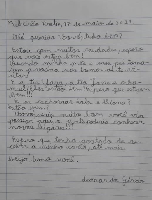 As crianças logo manifestaram interesse em escrever mensagens para as pessoas de quem sentiam mais saudades e que estavam afastadas devido à pandemia da covid -19. Avôs, tios, primos, amigos, padrinhos, enfim, teve carta para gente de vários cantos do país e também para o exterior, como Holanda e Israel.